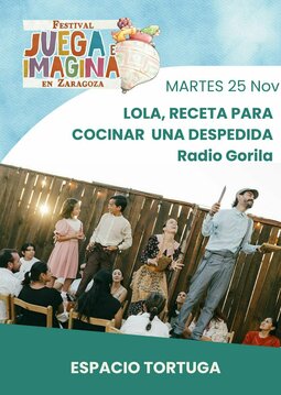 Experiencia escénica familiar In situ (adaptable a foros, teatros, fondas, casas) en donde entre anécdotas, consejos, llantos de cebolla y remedios de romero. La familia Barreto Covarrubias (Radio Gorila) conformada por Mar (12 años), Constanza (8 años) Tanya y Cristóbal, nos narran los recuerdos que guardan de "Lola" (abuela de Tanya) mientras desmenuzan las despedidas inconclusas que atraviesan como familia y el hueco que provoca la ausencia. Radio Gorila. Arte | Crianza | Educación. Han presentado su trabajo en distintas ciudades de la república mexicana y en países como: Estados Unidos, Canadá, Costa Rica, España, Alemania y China. "Lola. Receta para cocinar una despedida." sucede mientras se cocina a fuego lento un caldo de pollo para compartirlo a todas aquellas personas que adeuden un adiós. ¡Buen provecho!