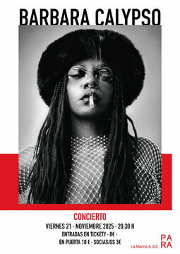 Barbara Calypso, (São Paulo, Brasil) es una artista polifacética afincada en Madrid cuya trayectoria abarca la música, la danza, la pintura, la ilustración y el arte escénico. Con formación en el Liceo Artístico Russoli de Pisa, la Accademia di Belle Arti de Carrara y una maestría en danza contemporánea del Opus Ballet de Florencia, ha desarrollado un lenguaje artístico que integra música, performance y artes visuales.