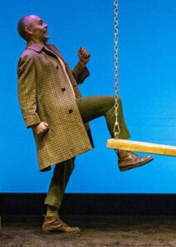 Dos hombres esperan junto a un columpio la llegada de Samuel para celebrar una fiesta. Para vencer al aburrimiento, inventan juegos, imaginan. Aparece el Señor Profesor, les da la lección y se marcha. Al final, subidos al columpio, intentarán escapar. Esta obra es una fiesta permanente en espera de la celebración de otra fiesta, la prometida por Samuel.