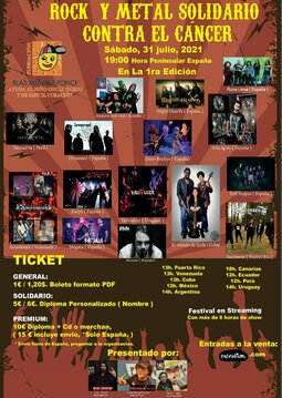 -10€ Ticket / Boleto + Diploma conmemorativo del evento + CD o Merchandising con envió incluido en España.
