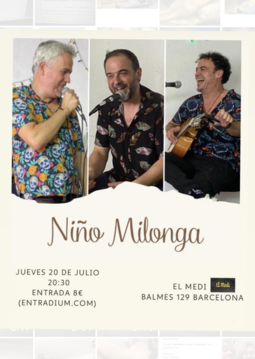 ¡¡¡Niño Milonga en el Medi!! Ven con nosotros a pasar un rato divertido cantando y bailando todos esos temas que nos han acompañado todo la vida desde que tenemos uso de razón ( o no).. ¡¡Será una gran noche!!!
