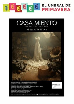 CASA-MIENTO (Bodas sin sangre) es un monólogo polifónico, un bululú teatral. Una comedia donde una única actriz encarna múltiples personajes utilizando distintos recursos y géneros: teatro de objetos, de texto, de gesto, danza y performance.