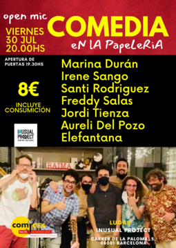 Pa echarnos unas buenas risas con la comedia. Y es que todos los viernes podrás disfrutar de cómic@s diferentes para que te partas de la risa, desde el formato Open Mic Stand Up Comedy. Ahora monólogos en la terraza de la Papelería los viernes de verano. Seguimos con los siguientes cómicos:
