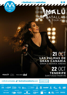 El Festival Mar Abierto acaba de presentar a la primera artista de su 16ª edición, que se llevará a cabo entre mayo y diciembre de 2022: Malú. La artista española anuncia nuevas fechas de su gira Mil Batallas Tour 2022 entre las que se incluyen la doble visita a Canarias con un concierto en Gran Canaria y otro en Tenerife en el mes de junio. Sevilla, Tarragona, Albacete, Las Palmas, Tenerife, Marbella, Sancti Petri, Alicante, La Coruña y Málaga se suman a Madrid, Granada, Murcia, Valencia, Mallorca, Bilbao y Barcelona, las citas anunciadas el pasado 27 de octubre. Las entradas para los conciertos de Festival Mar Abierto están disponibles a partir de este jueves a través de la web del festival, www.marabiertoproducciones.com, y la nueva tiquetera oficial del Mar Abierto, www.tickety.es, además de la plataforma de ventas de localidades del Pabellón Santiago Martín solo para el concierto de Tenerife.