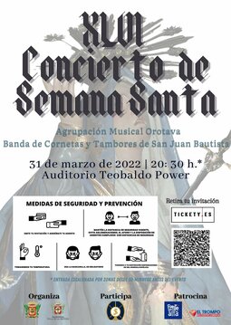 El Auditorio Teobaldo Power acogerá el próximo 31 de marzo, a las 20:30, el XLVI Concierto de Semana Santa de La Orotava.