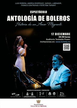 Por primera vez en la isla de Tenerife, el 17 de Diciembre se presenta en el Auditorio Teobaldo Power de La Orotava “Antología de Boleros, historia de un amor migrante” en las voces de Luis Morera y Andrea Rodríguez, que recorrerán la historia del bolero de la mano de la distinción instrumental de Tres a Pèl (Pepetoni Tamarit, batería; Franco Contreras, bajo; Samuel Labrador, piano).