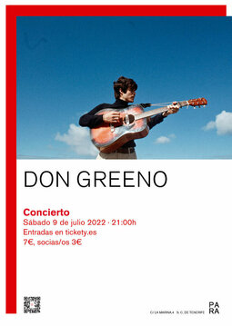 Don Greeno es el proyecto musical del cantautor gran canario Guillermo Del Nero. El proyecto nace durante la pandemia, cuando Guillermo comienza a escribir y producir sus propias canciones en solitario. Fusionando el dream-pop con ‘Americana’ Greeno combina ritmos de tempo lento con progresiones de acordes y melodías de ensueño. El año pasado ha presentado el proyecto en solitario en Gran Canaria y Tenerife, este año se propone la oportunidad de tocar en formato de banda acompañado de músicos de la escena canaria, experimentando con nuevos sonidos.