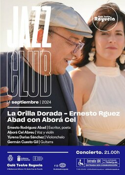 "La Orilla Dorada" es un recital músico literario con Ernesto Rodríguez Abad, creador y Director del Festival Internacional de Cuentos de Los Silos, que mezcla su pasión por la literatura, incluyendo sus grandes obras, con un acompañamiento a voz, violonchelo, violín y guitarra.