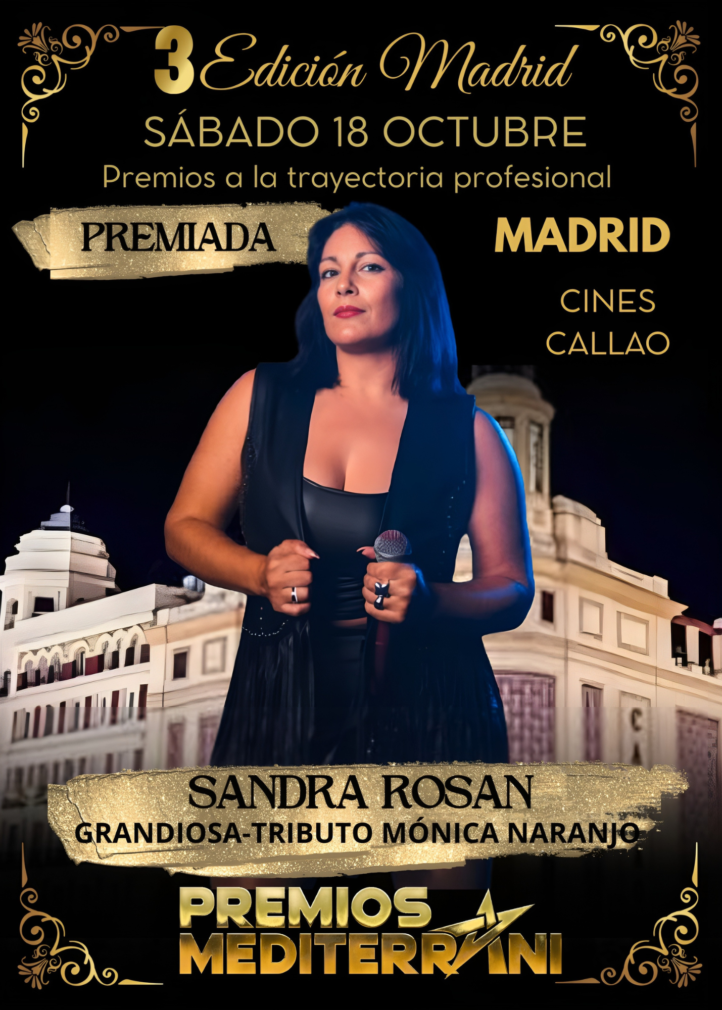 De la mano de Tributo Sanz y Eventos España, llega la recién Galardonada por su Trayectoria Profesional GranDiosa, el Tributo Oficial a una de las voces más potentes e icónicas del pop español: Mónica Naranjo.