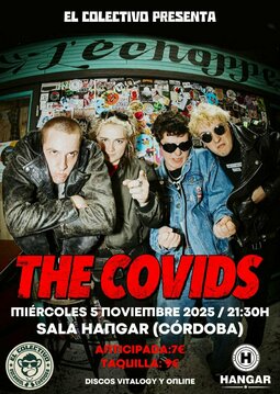 THE COVIDS, de mano de El Colectivo en el ciclo de "conciertos entre semana en Hangar", la contagiosa nueva amenaza del punk-rock tiene sede en Ámsterdam y se originó a partir del aburrimiento durante el confinamiento. Desde entonces, la banda ha tocado sin parar en el circuito de clubes europeos habiendo participado en festis como Flamin' Go Beach, Sleazefest, Kliko fest, Montesquiou On The Rocks. En su música oirás ecos de grupos como BUZZCOCKS, THE DAMNED, THE VIBRATORS o THE WIPERS, con una producción fresca y potente que hará las delicias de todo amante del género.