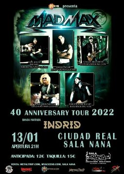 Anuncio de las nuevas fechas del “40 Anniversary Tour" de la banda de Hard Rock alemana Mad Max, que pasarán a enero de 2022. La Gira arrancará en la Sala Nana Conciertos de Ciudad Real, el jueves 13 de enero de 2022.