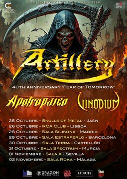 Una de las bandas pioneras del thrash metal europeo, activos desde los 80. Con discos legendarios como By Inheritance y su último trabajo X, Artillery continúa demostrando por qué su técnica, velocidad y riffs afilados siguen siendo referencia en la escena. Están de celebración con el aniversario de su disco "Fear of Tomorrow" (40 años!). Vamos a ver pura artillería sonora sobre el escenario de la Sala X!