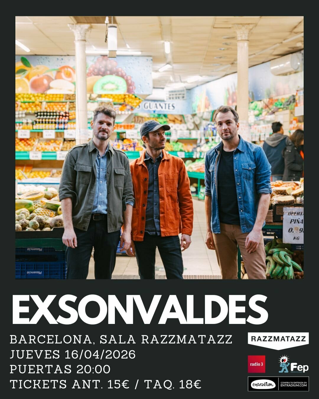 El mítico trío parisino EXSONVALDES vuelve a los escenarios españoles para una noche única en Barcelona. Tras el éxito de Maps (2023), la banda presentará en directo las canciones de ese trabajo junto con un adelanto exclusivo de su esperado nuevo álbum Ninety Seconds to Midnight, que verá la luz a principios de 2026 bajo el prestigioso sello internacional V2 (dEUS, Grandaddy, Mercury Rev).