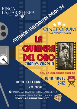 Desde Finca La Garrofera presentamos nuestra primera sesión de cinefórum, donde proyectaremos La quimera del oro (1925), una de las obras maestras de Charles Chaplin.