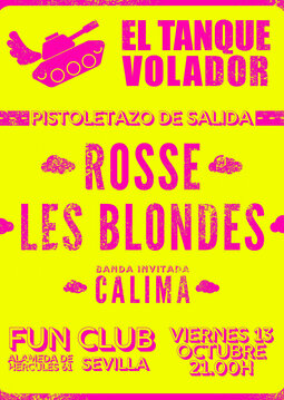 El Tanque Volador es una agencia de desarrollo artístico y autodefensa en la industria musical. Actualmente trabaja con Rosse y los cordobeses Les Blondes. En este evento creado para mostrar nuevos proyectos musicales a la escena sevillana, se darán cita profesionales del sector, medios, y artistas y bandas emergentes, para ser testigos de la presentación en exclusiva del próximo single de Rosse, y del primer EP de Les Blondes, titulado El Power Point de tu vida. Como invitados especiales, la banda Calima Project.
