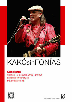 KAKÓ Rguez, artísticamente conocido con su banda “kakofonías”, un cantante revelación y muy conocido por todos los rincones de Canarias. Sus Kakofonías llevan tras de sí tardes y noches de música de autor cargado de humor y de compromiso Probablemente pulmón de discos ya míticos en nuestra escena que ya todos sabemos ; "Bluesdrágora", " Que me embarguen" «Yo, tú, él», " Amor no-escupido", viene subiendo,Atención obras, etc.