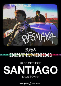 En este "Tour Distendido 2023", los Javis nos presentarán en directo su primer proyecto de estudio con Sony Music acompañados de su banda y un enérgico show, en una gira por toda la península. Un nuevo EP de 5 temas que YA ESTÁ DISPONIBLE en formato físico, con un vinilo de 10” y digital al que han bautizado como “BESMAYA” en honor a toda su evolución artística y personal desde que nació la banda. Es en este EP donde el dúo consolida su sonido característico; a caballo entre lo urbano y lo orgánico, entre los sintetizadores y las guitarras, entre lo gamberro y lo sentimental, en un cocktail sonoro producido íntegramente por el consolidado productor Paco Salazar. Estas cinco canciones muestran una evolución de Besmaya hacia un sonido más maduro y delicado, agresivo y cargado de emociones, que bebe de todas las fuentes de la música alternativa actual con influencias de artistas como Alizzz, Cupido, Natalia Lacunza y Cala Vento, entre otros."