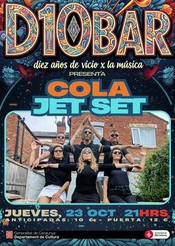 Este jueves, 23 de octubre, a partir de las 9 pm, recibiremos a Cola Jet Set, un quinteto que ha vuelto después que cesara sus actividades en mayo de 2019... Liados sus componentes con Los Fresones Rebeldes, Amor Propio, Los Ritmos Salvajes y un largo etcétera, sin dejar de ser amigos y ayudándose en la música y en la vida, el grupo reprendió la marcha hace unos meses para dos conciertos en Inglaterra y ya ha seguido la ruta con paradas en Málaga, Madrid y ahora Barcelona...
