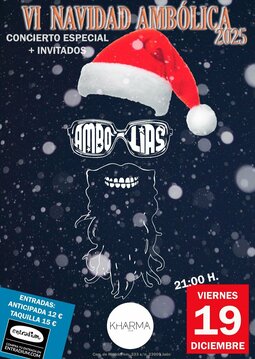 El viernes 19 de diciembre a las 21 horas, LOS AMBOLIAS regresamos una vez más con las ya tradicionales 'Navidades Ambólilcas' las cuales llegan ya a su sexta edición, y en la cual como es habitual, nos rodearemos de un puñado de grandísim@s artistas, amig@s de la banda y con l@s cuales esperamos haceros pasar un rato tan ambólicamente divertido y apasionante como en otras ocasiones.